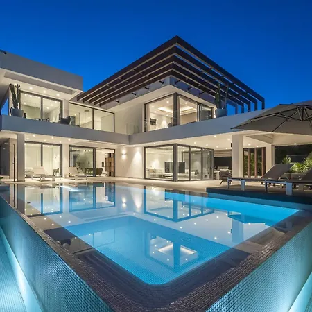 Featuring a private pool for guests' relaxation, Luxury Five Bedroom Villa With Sea View Estepona is located around a 10-minute drive from El Saladillo Beach.